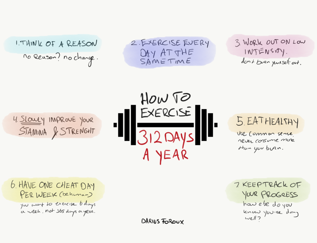 Look, I don’t take life that seriously. But I’m dead serious about my health. If it’s your goal to exercise every day, you can do it. On average, people exercise 3 days a week. That’s 156 days a year.