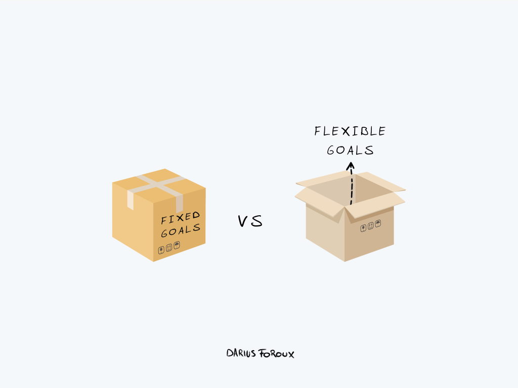 So here’s what happens. You set fixed goals and get tunnel vision caused by the attentional bias. You keep moving towards your goal even if it’s no longer the right goal.