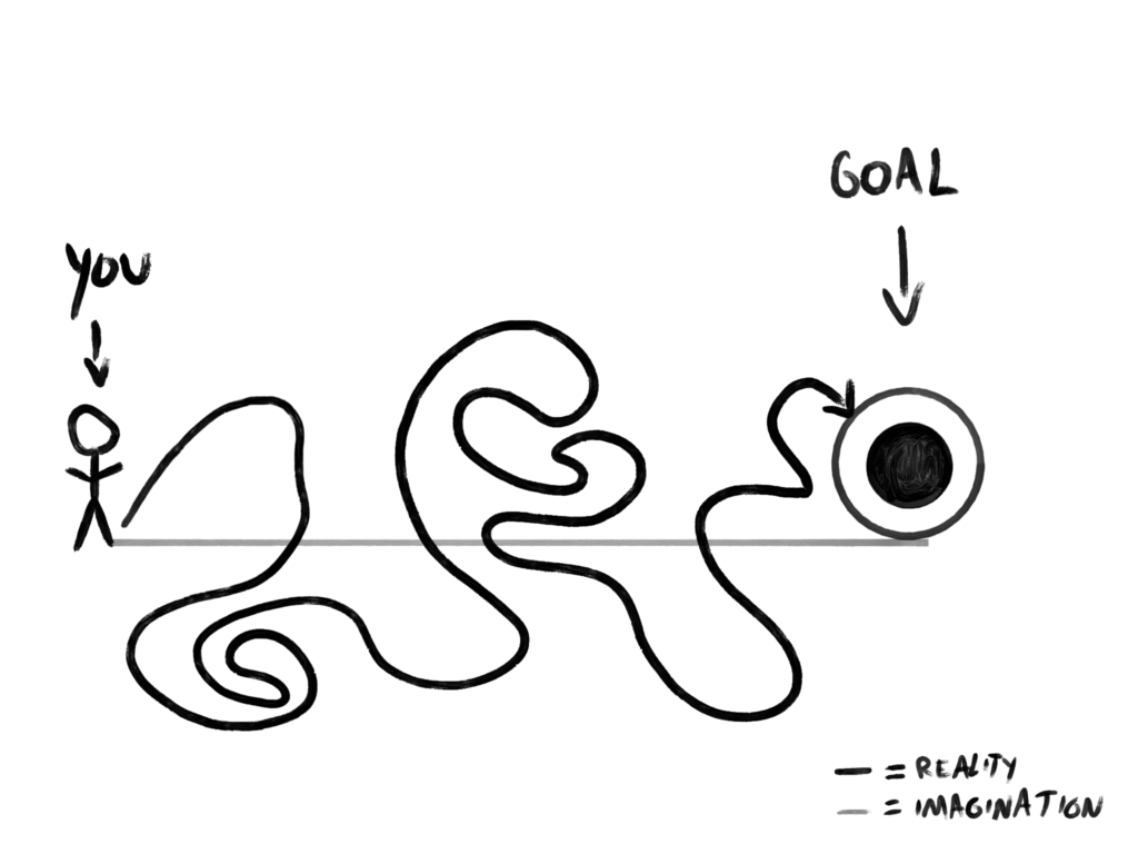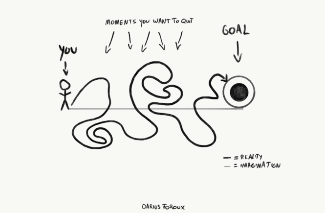 We believe there’s a straight line from where you are to where you want to be. Let’s say your goal is to start a business so you can have more freedom in your life. That was my goal since I was 17.