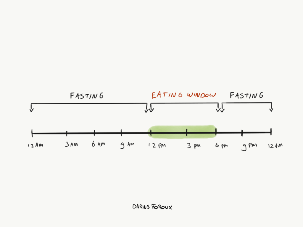 That’s my eating pattern. It’s about a 17-18 hour fast (from 6PM-7PM until 12PM the next day). It looks like this: