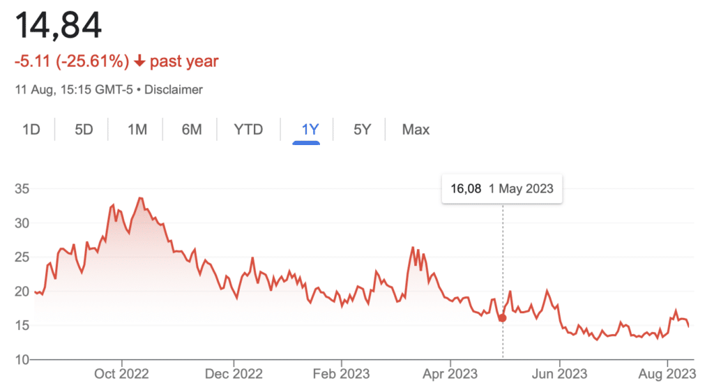 While it might not be a reliable predictor, it does give you a sense of overall volatility at the moment. Here’s the VIX chart for the past 12 months: