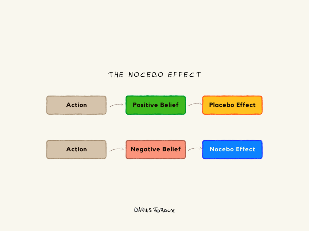 You’ll focus on the negatives, ignore the positives, and ultimately create a self-fulfilling prophecy. That’s the nocebo effect in action.