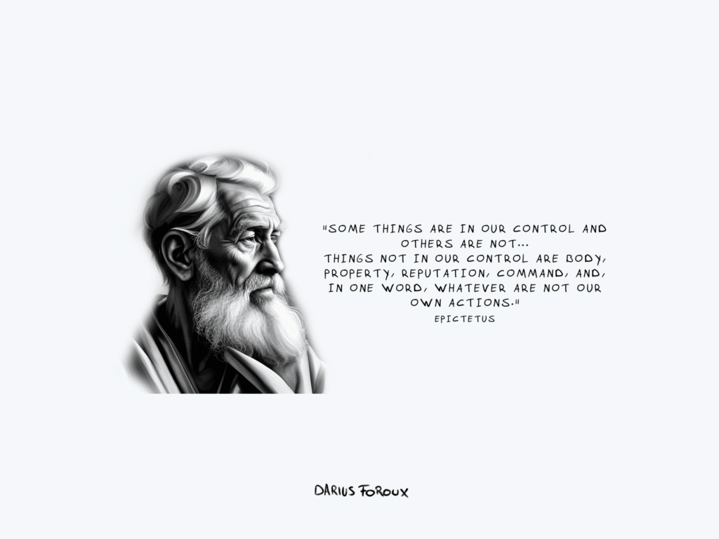 “Some things are in our control and others not. Things in our control are opinion, pursuit, desire, aversion, and, in a word, whatever are our own actions. Things not in our control are body, property, reputation, command, and, in one word, whatever are not our own actions.”