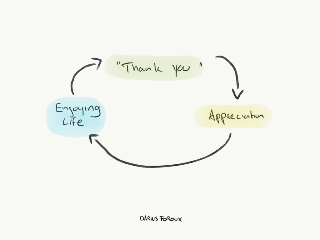 Saying thank you is a habit. It shows that you appreciate everything. Big things and little things. And appreciation is an important aspect of a happy life.